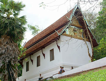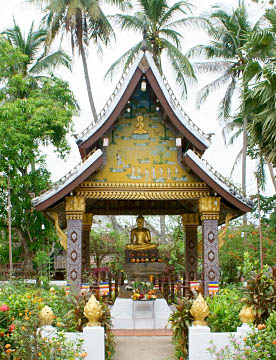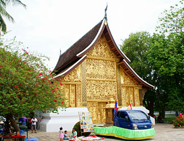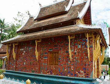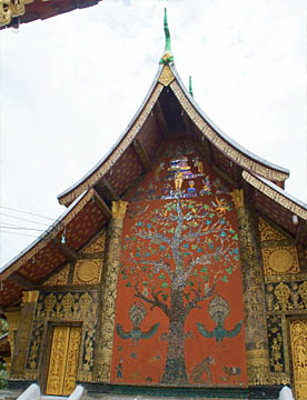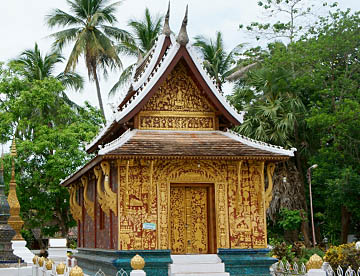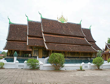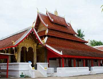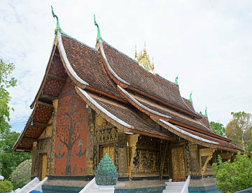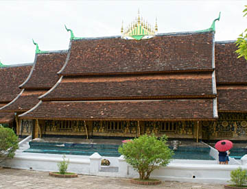 地面ぎりぎりまで長く伸びた独特の大きな屋根が特徴の、ルアンパバーン様式で作られ、ラオスの寺院の中で最も美しい寺院と言われています。