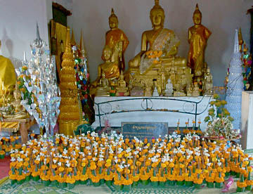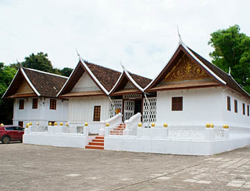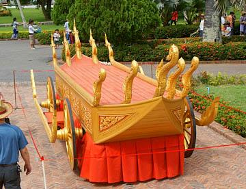 境内には、シーサーワンウォン王の葬儀に使用された霊柩車が納められ、王家にまつわる数々の骨壺がこの寺院に安置されています。