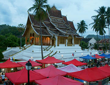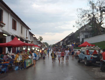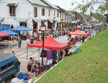 ルアンパバーンの旧王宮前の目抜き通り、シーサワンウォン通りは毎日夕方になるとナイトマーケットの準備が始まり、その日のうちに店はすべて撤収し朝にはきれいに掃除され、新しい日常に繋がっていきます。