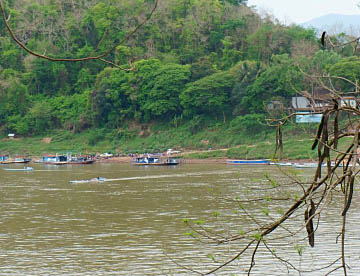 ちょうど日没になると、日がメコン川へ沈んでいきます。