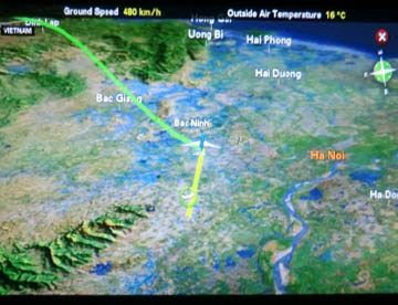 機内にてスナックと水のサービスがあってハノイ着 20:05