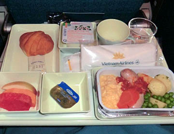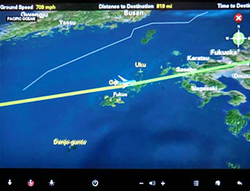 五島列島の上空を飛んでいる頃に朝食のサービスが出たけれど眠くて味わよくわからなかった。