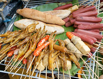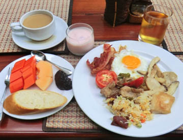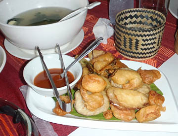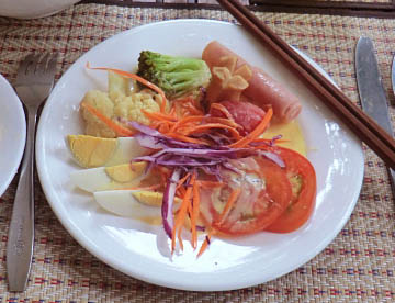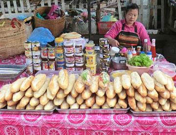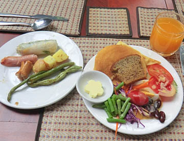 ラオスでの主食は日本と同じ「お米」です。「白米」だけでなく「赤米」や「おこわ」もあって、フランスの統治を受けていた時代もあってパンも多く食べられています。海を持たない内陸国ですが、メコン川からの魚類も多く食べられていて、豊富な野菜と相まって日本での食事内容との差はあまり感じられませんでした。