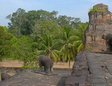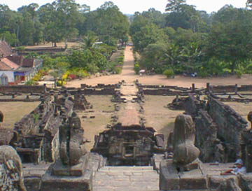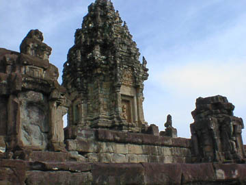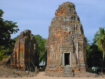 | ロリュオス遺跡群 ロレイ・プリアコー・バコンの3遺跡を見たが、いずれもアンコールワット以前の遺跡であり、それなりの傷みはあるものの、手入れは行き届いており周囲の田園風景と溶け込むようにして残されている。 シェムリアップの中心部より国道6号線を東に、右手にプサルー(新しい大きな市場)を見ながら10km程の場所。 |