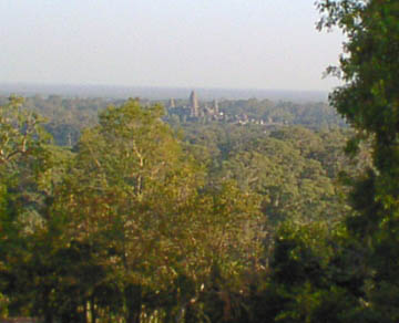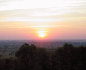 | 右はプノンバケンの頂上から見たアンコールワット。 下はプノンパケンより見た夕日。 |