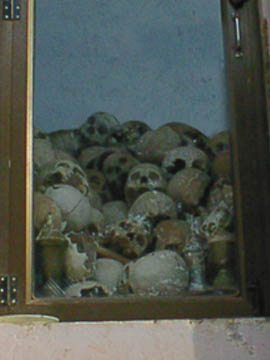 キリング・フィールド ポル・ポト政権時代にはここシェムリアップでも粛清の名の下で数十万人の人々が殺されたと言われています。 この慰霊塔の中には、この辺りで発掘された人骨が納められています。 合掌 |