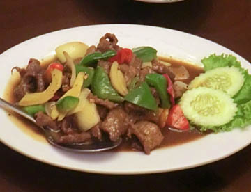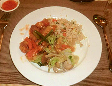 イスラムの教えから豚は食べないのでチキンと牛肉を使った料理、特に鶏肉が多いように見受けられた。
