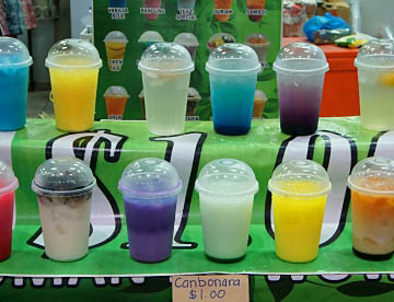 マーケットでは多種類のカラフルな飲み物が売られていたが、その色に手が出せなかった。