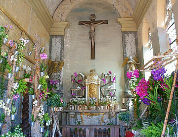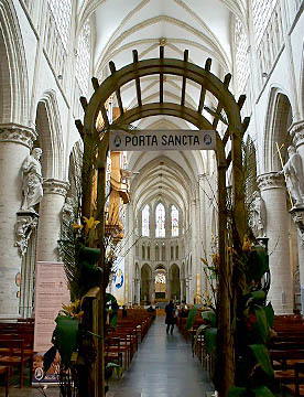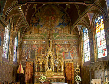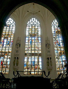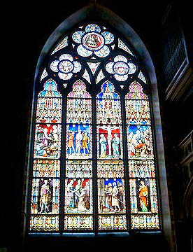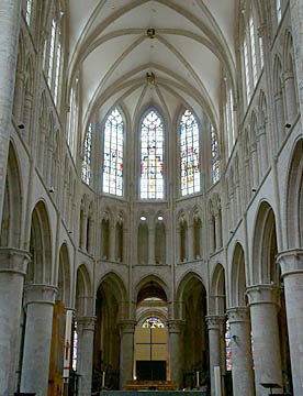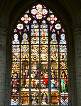 バスを利用して「涙の山」に登ると山頂に荘厳なファサードを持つ「サン・ミッシェル大聖堂」が建てられている。内部は白い壁と大きなステンドグラスでとても明るい感じの教会だ。