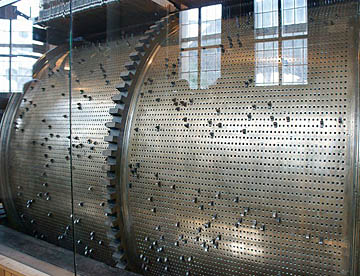 ここの鐘楼は直径が2メートルもある巨大な円筒がゆっくりと回転するオルゴールの様な構造になっていて、大小47個の鐘が美しい音色を響かせるのを間近に見れた。