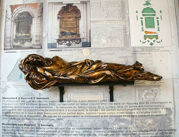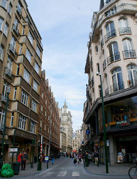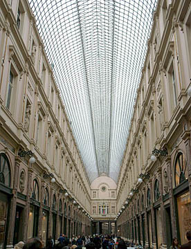 広場の北の方に位置する、ギャルリー・サン・チュベールは全長212mの見ているだけでも楽しいショッピングアーケード。1847年に完成した高いガラス張りの天井からは自然光を受け明るい。