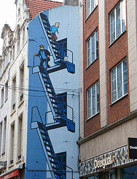 そこから数分の処にこの街の名物「小便小僧」が建物の角に建っている。