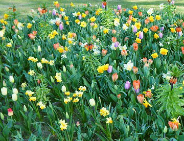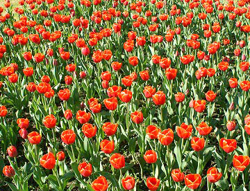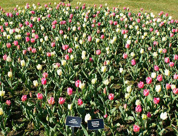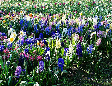100万株以上のチューリップ、ヒヤシンス、ムスカリ、ユリ等800種以上の花々が広大な庭園を彩る。朝一番での入場だったので静かに花々を鑑賞できた。
