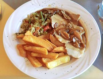 ベルギー名物「ムール貝の白ワイン蒸し」をはじめとして各地での名物料理を美味しく頂きました。ただ1人前の量は多かったです。