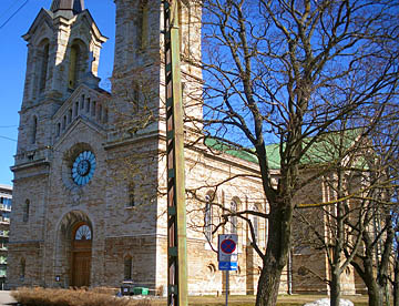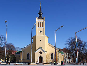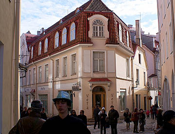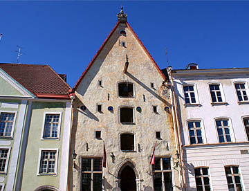 旧市街のレストランで昼食の後は旧市庁舎前のラエコヤ広場に面した1422年創業の欧州最古の薬局、聖霊教会、ブラックヘッドギルド、ヴァイム通りと歩いて「聖オレフ教会」へ。