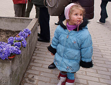 人々はまだ冬の服装です。人の姿も多くは見れませんでした。