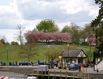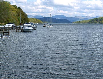 10時40分にハヴァースウエイト駅を出てわずか20分足らずの列車の旅は終わりレイクサイド駅に到着し、隣接する桟橋からのウィンダミア湖のクルーズ船に乗り換えて40分あまりの遊覧クルーズでボウネスの桟橋に到着。