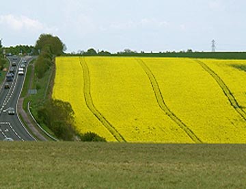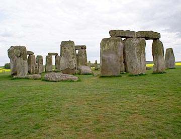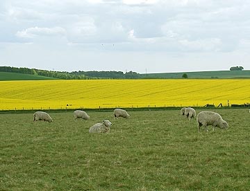 なだらかな丘陵地帯、黄色の絨毯を敷いたような菜の花畑、のんびりと草を食む羊、その中にストーンヘンジの石組み。