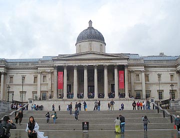 エジプトの巨大な石像、ミイラ、ロゼッタストーン、ギリシャの神殿の一部、ローマ時代のコレクション等を見てカフェテリアで昼食を済ませてから13時に大英博物館を出て徒歩でナショナルミュージアムに向かう。