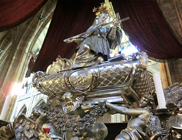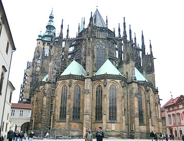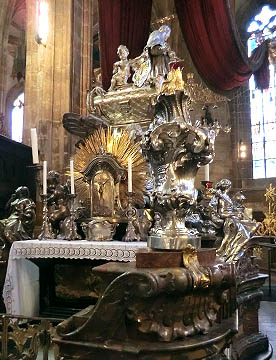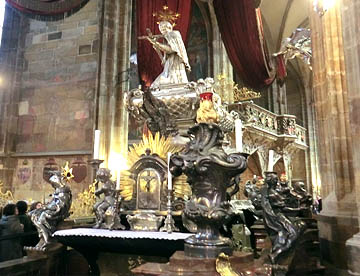 貴石や金等で装飾されたボヘミアの守護聖人ヴァーツラフの礼拝堂、2トンもの銀が使われた聖ヤン・ネポムツキーの墓等往時のボヘミヤ地方の財力を知ることができる。