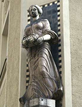 最初はスメタナ博物館。ヴルタヴァ川に面した入り口の前には巨大なスメタナの銅像が。