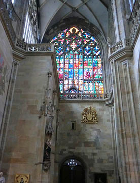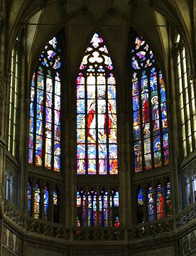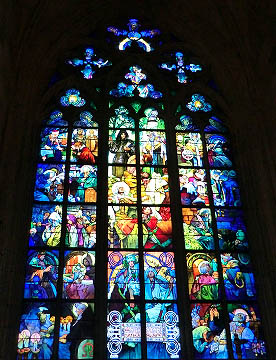 内部には美しいステンドグラスが多用されていて特にムハのものは有名。