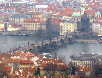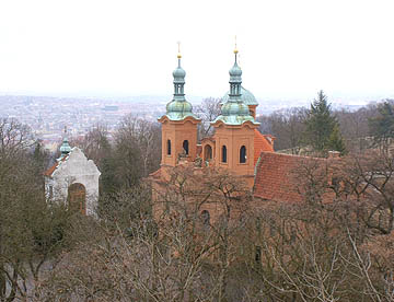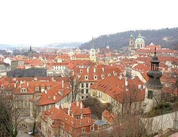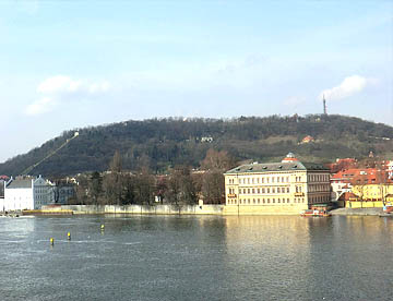 旧市街からヴルタヴァ川の対岸を望むと左手にベトシーンの丘。右手にはプラハ城。その中間に位置するのがストラホフ修道院。