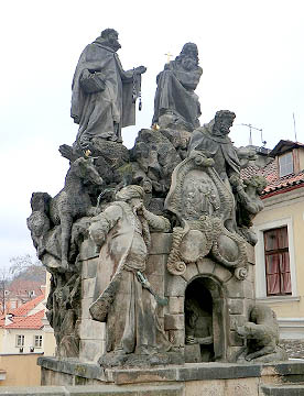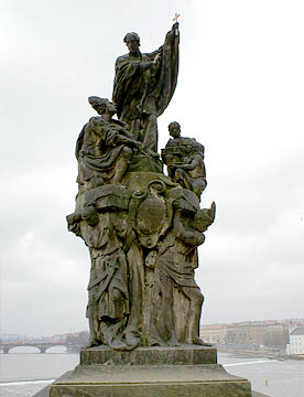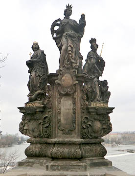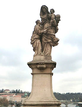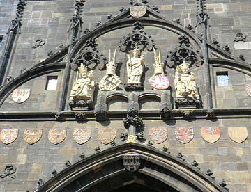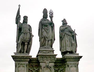 黒い大きく高い橋塔をくぐって橋の欄干に30体の聖人像で有名な立派なカレル橋を渡って対岸のマラー・ストラナに。目の前のプラハ城には向かわずにバスに乗りヴィシェフラドへ。