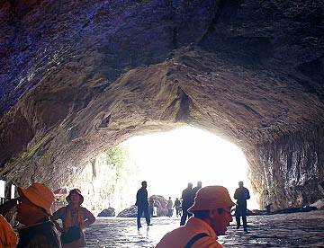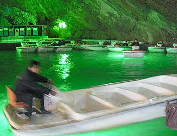 本渓水洞は洞の入り口入ってすぐのところで防寒コートを借りてボートに乗り、天井からの鍾乳石に頭をぶつけそうなところもあったりしながら、約1時間すべてボート上からの見学となる。