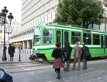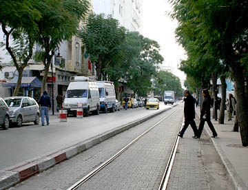 チュニスの街は縦横に路面電車が通っていて、ホテルの前も6両編成の電車が走っていた。