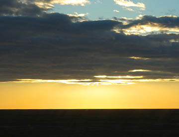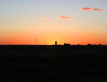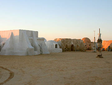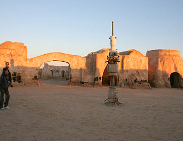 それでもきれいな日の出を見て、その後丘から急な坂道を走り下って映画の「スターウォーズ」のロケで使用されたセットがそのまま残されているのを見学してホテルに戻り、一息入れて8時55分に観光列車「レザー・ルージュ」に乗るために、昨日通ってきた街、メトラウイへと向う。