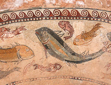 この博物館はオスマン帝国の時代に宮殿として建てられたものでそれだけでも見る価値があるが、それ以上にフェニキア時代、ローマ時代、ビザンチン時代のモザイクが大量に展示されていて、壁面だけでなく見学者が歩く床にまで古い時代のモザイクが飾られている。