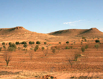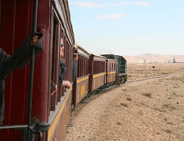 車窓の景色はだんだんと高い木がなくなり、なだらかな丘陵地帯に荒地がひろがるようになり砂漠地帯の入り口にきたのがわかる。
