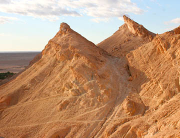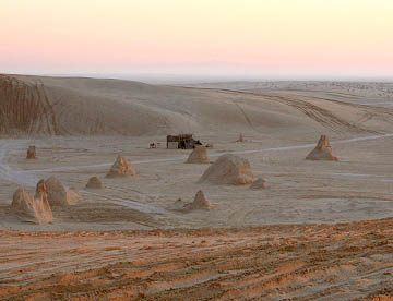 ここの砂漠はモロッコのメズルーカと違って色は黄土色で湿り気があって風紋も見られない。