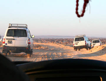 6時半に新車同然のトヨタのランクルに分乗してまだ暗い道を砂漠目指して出発。