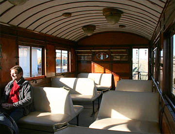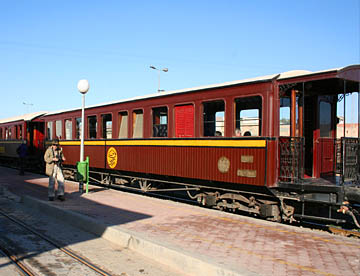 車両ごとに仕様の異なる赤茶色の車体で、ディーゼル機関車に引かれてセルジャ渓谷までを往復する。