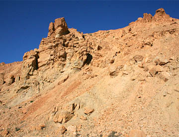 ミデスというオアシスは40年ほど前に集中豪雨で山の斜面に築かれていた住宅に土砂が流れ込んで壊滅的なダメージを受けて放棄された住宅が残されている。
