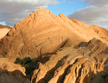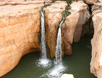 昼食後はタメルザの小さなオアシスを通り抜け、すぐ近くにあるグランドカスカドという名前(大滝の意)には似遣わないがこんな砂漠の中に存在する滝と周囲の見事な岩山を眺めて小休憩。今が収穫時期のナツメヤシを買った。