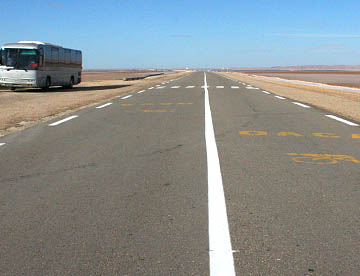 道路の両側に広がる大塩湖だが走る車の車窓からは水面は殆ど見えない。