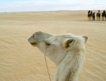 昼食後ラクダの背に揺られてサハラ砂漠を40分ほどの散歩。