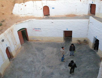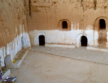 マトマタでは岩をくり抜いて住居としている穴居(洞窟)住宅に住むベルベル人のお宅を見学して、スターウォーズの撮影が行われたホテルに立ち寄って洞窟風のディアル・エル・ベルベルホテルへ。
