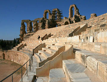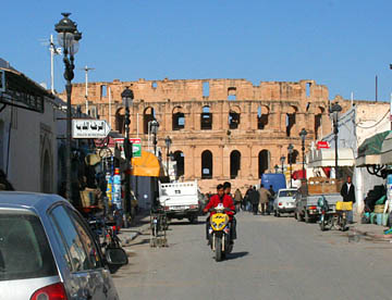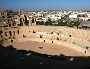 バスはさらにガベス湾に沿って北上してマハレスという小さな街のコーヒーショップで休憩してチュニジア第2の都市スファックスの郊外で内陸部に入り、オリーブ畑の間の真っ直ぐな道を走ってエルジェムへの到着は11時。