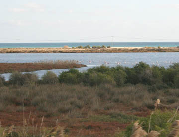 ナブールから海岸線を北上してケルクアンへ。途中の海岸ではフラミンゴの群れも見られた。