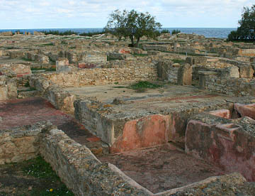 12時30分にケルクアンの遺跡に到着。世界遺産に登録されたケルクアンの遺跡は紀元前6〜2世紀にこの地で生活していたフェニキア(ポエニ)人の都市遺構が発掘されて一部が復元され当時の生活様式などを偲ぶことができる。