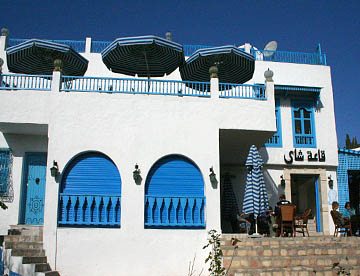 遺跡の見学を終えてさらにボン岬の先端近くのエルハワリアの海岸沿いにぽつんと1軒だけあるレストラン、ラドラードで名物料理のえびのオジャの昼食。