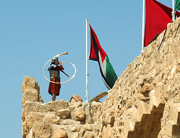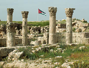 ヘラクレス神殿やビサンチン時代の住居跡、ウマイヤ朝の宮殿跡等を見学、遠くには世界最大といわれる国旗(横60m縦30m、高さ126m)が翻る
