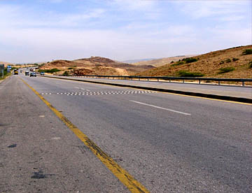 一昨日の到着時と違って明るい青空の下、ワディ・ムーサの景色を楽しみながら途中のカトラーナで休憩(バスソルト、泥パック、泥…何とか等々、死海グッズのお土産を売っている)、さらに死海に向けてドライブ。