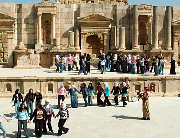 ペトラよりも時代が新しいこともあって立派な劇場では、遺跡発掘の寄金を集める軍の音楽隊のミニコンサートが。