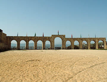 ハドリアヌス門から入ってすぐに、サッカー場を2つ並べたほどの大きな競技場を見て、教会を眺めながらまっすぐ行くと列柱に囲まれたフォーラム(広場)、左に少し上った所に円形劇場。