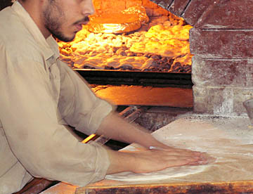 11時30分より遺跡のすぐ近くのグリーンバレーレストランにて、アラビアパンを焼く釜を見てから昼食。